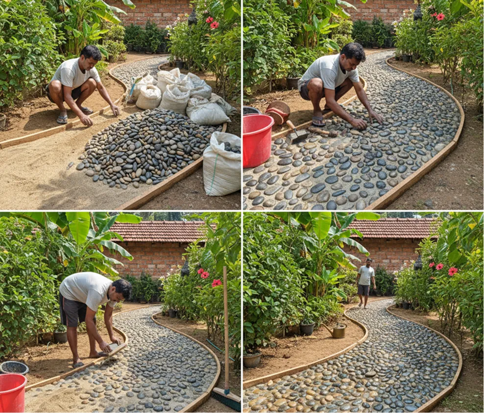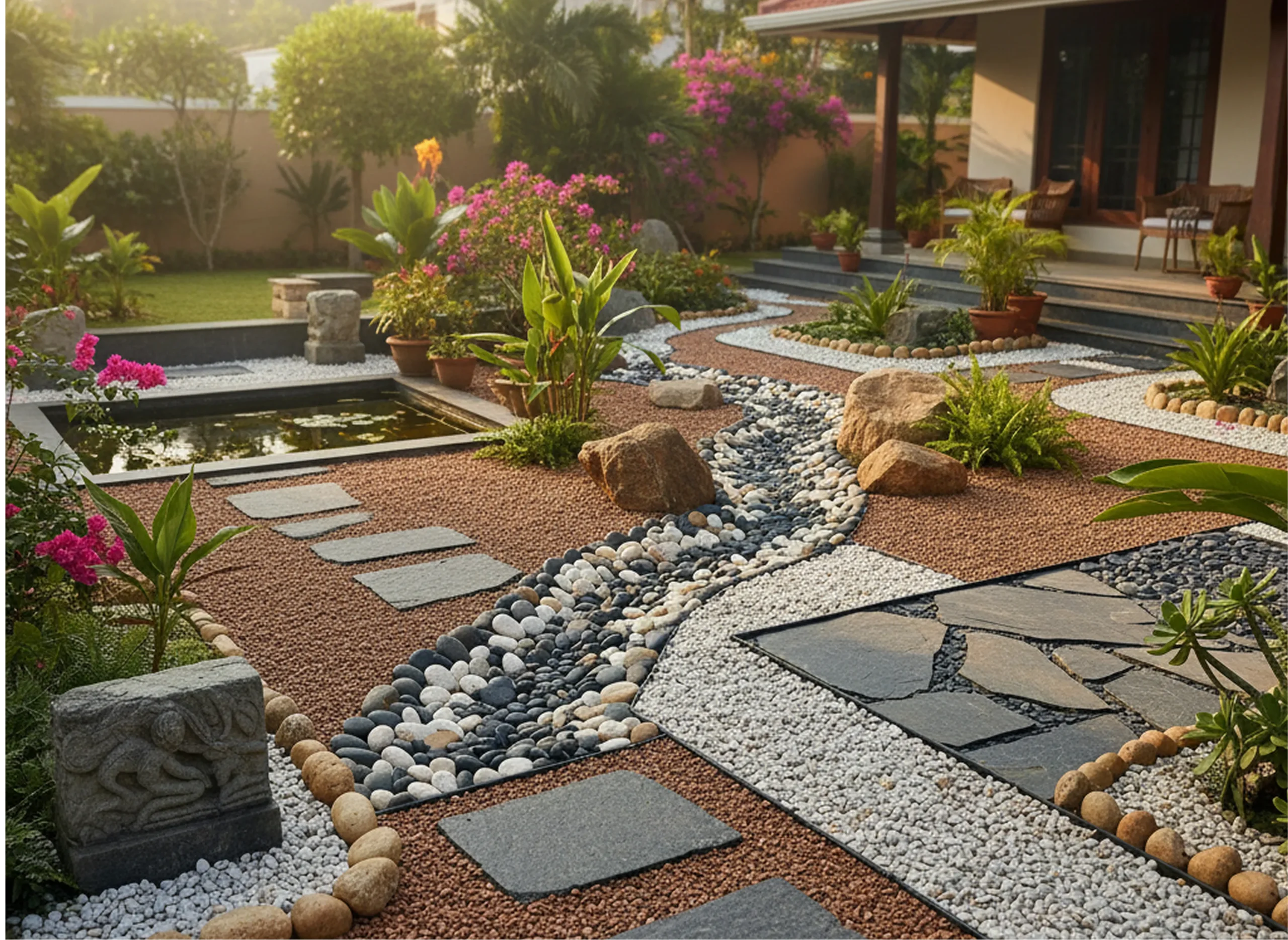 Q: Can pebbles be used in Bangalore’s monsoon climate? Absolutely. Actually, pebbles excel in rainy conditions because they’re permeable and don’t create muddy messes. Just ensure proper drainage underneath and consider lighter colors that won’t show dirt.