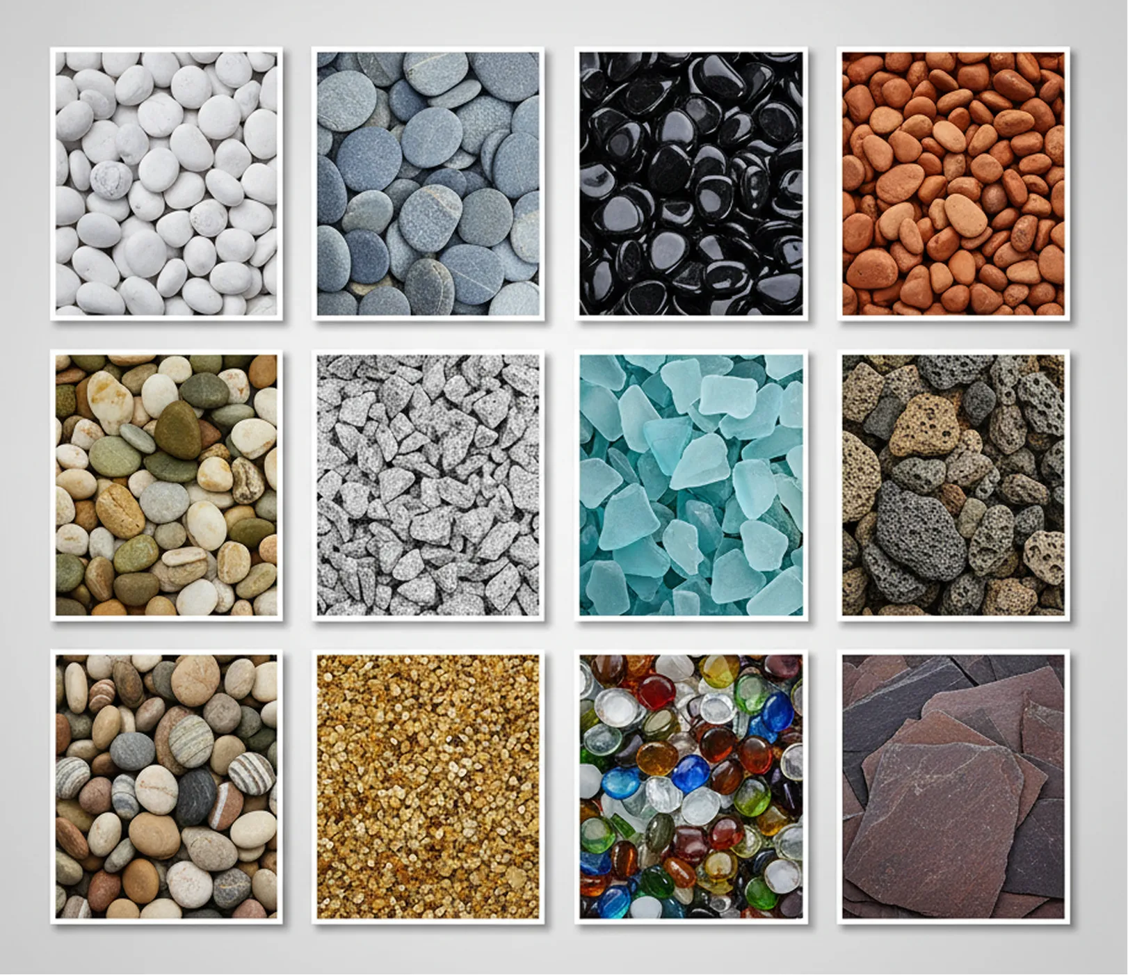 - 16. Mosaic-Grade Flat Pebbles Carefully selected for uniform thickness. Ideal for vertical applications and art pieces.